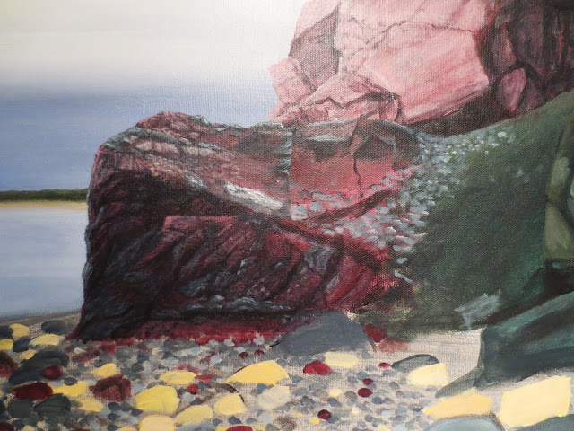 I thought I would show the painting process of Tickle Cove Broad. I started work on it October 22nd. I usually sketch out the image on large paper in reverse then transfer it onto the canvas with tracing paper but I didn't follow that procedure with this one. The basic outline is less complicated I think than the previous I've worked on...or maybe I just got lazy!